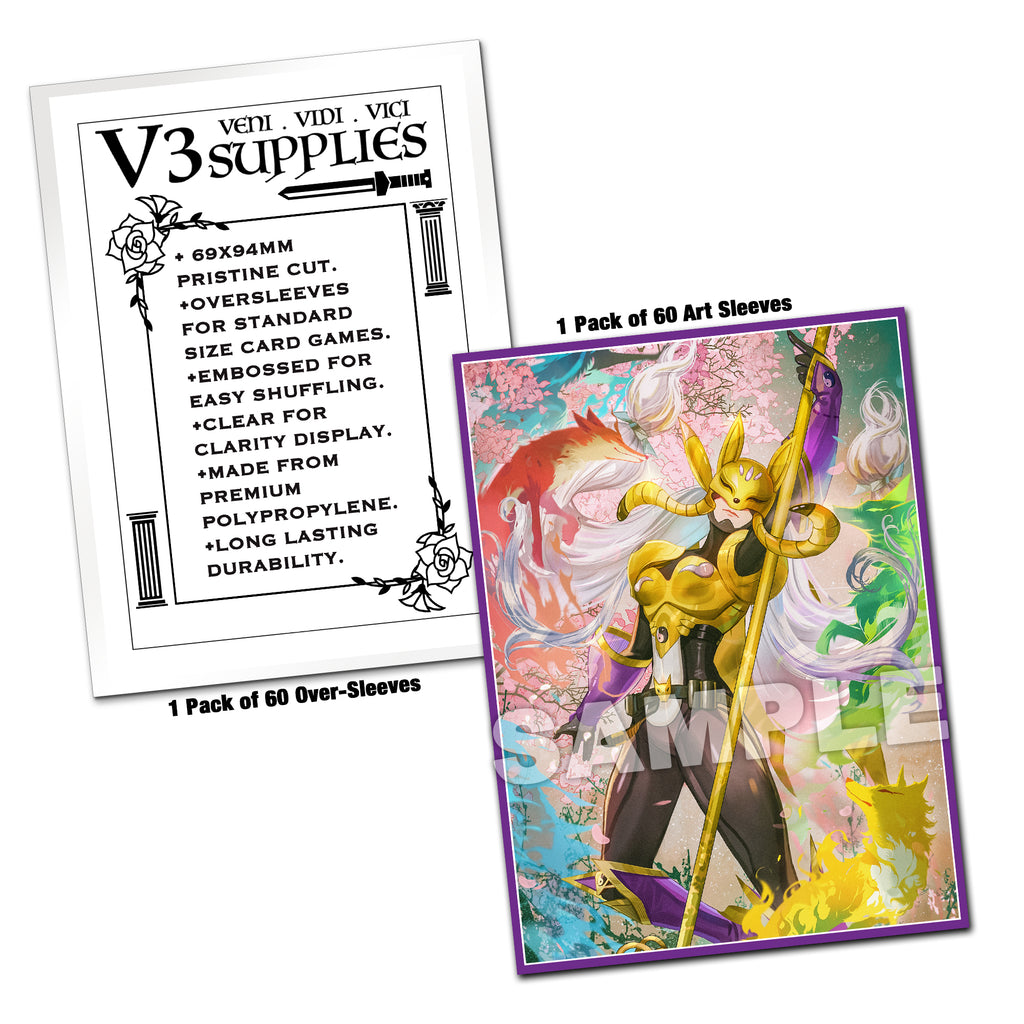 写真は、V3 Gaming のオーバースリーブ 2.7 x 3.7 インチ (69x94mm)、60 個/パックです。標準サイズのイラスト入りカード スリーブを保護するのに最適です。