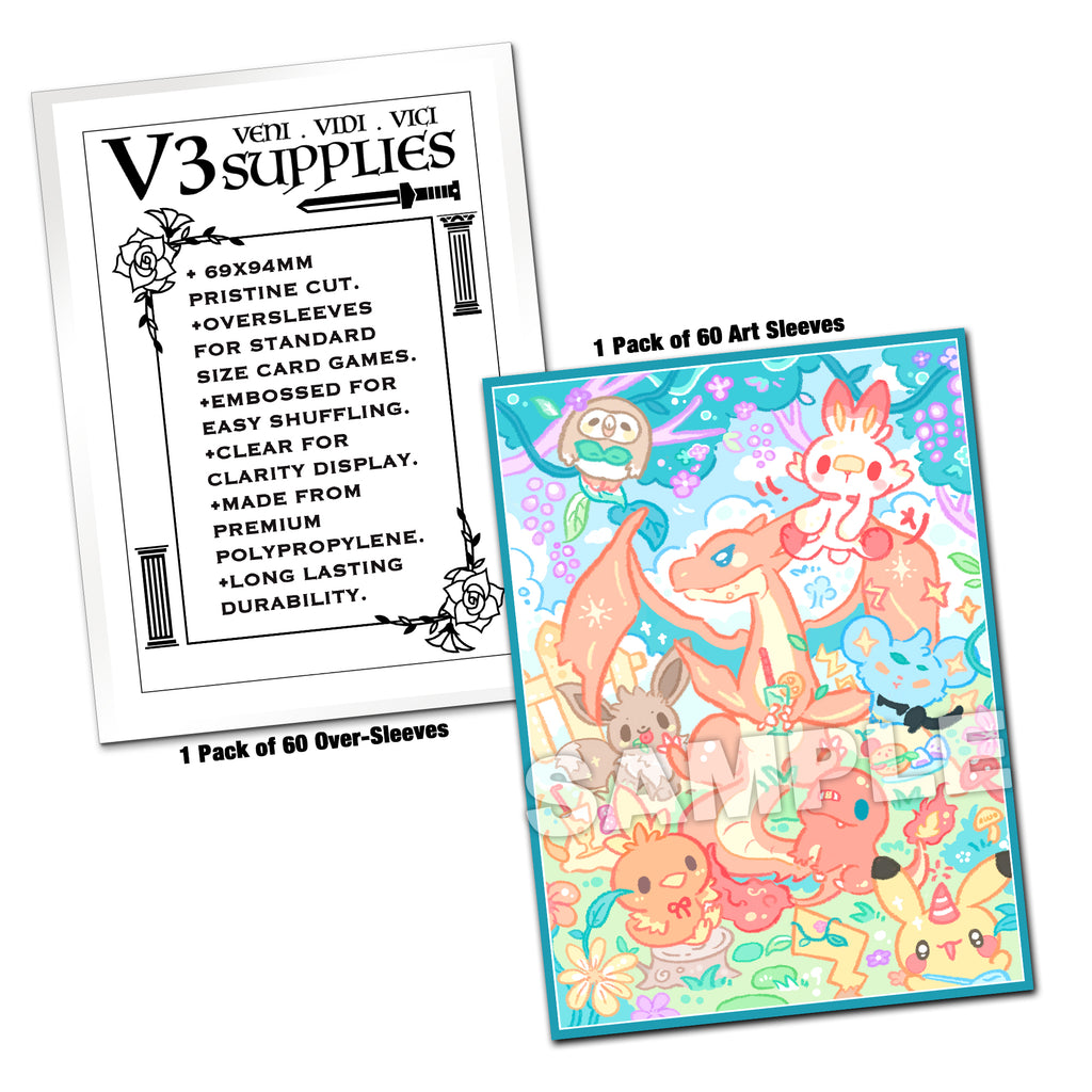写真は、V3 Gaming のオーバースリーブ 2.7 x 3.7 インチ (69x94mm)、60 個/パックです。標準サイズのイラスト入りカード スリーブを保護するのに最適です。