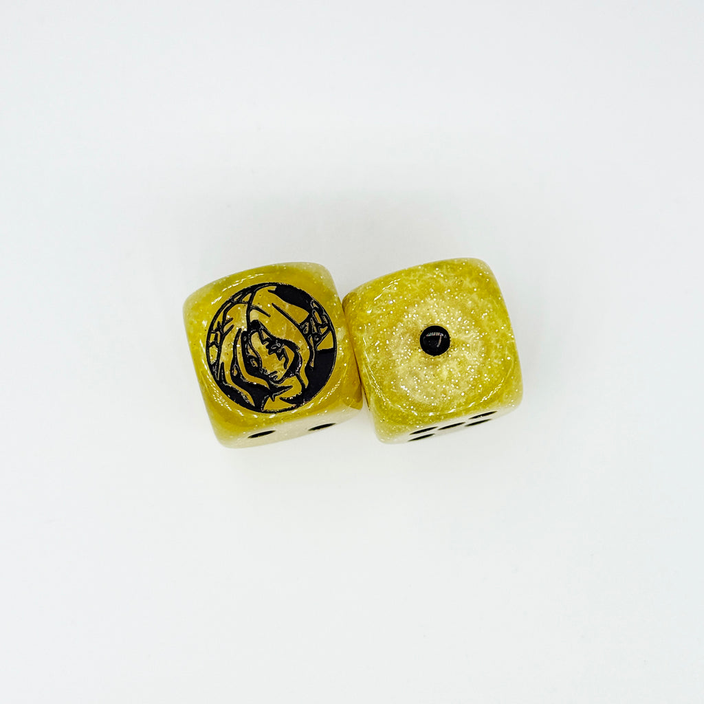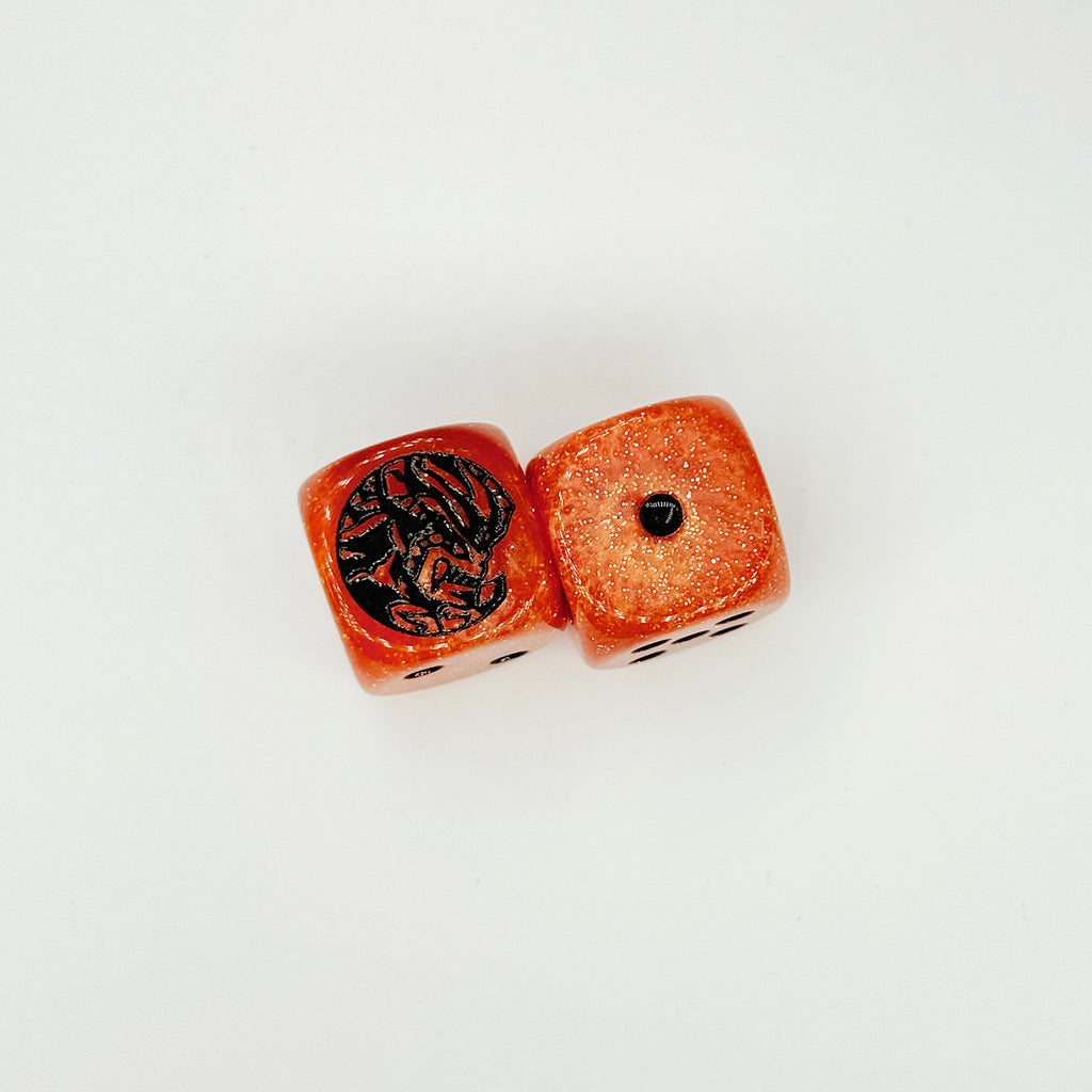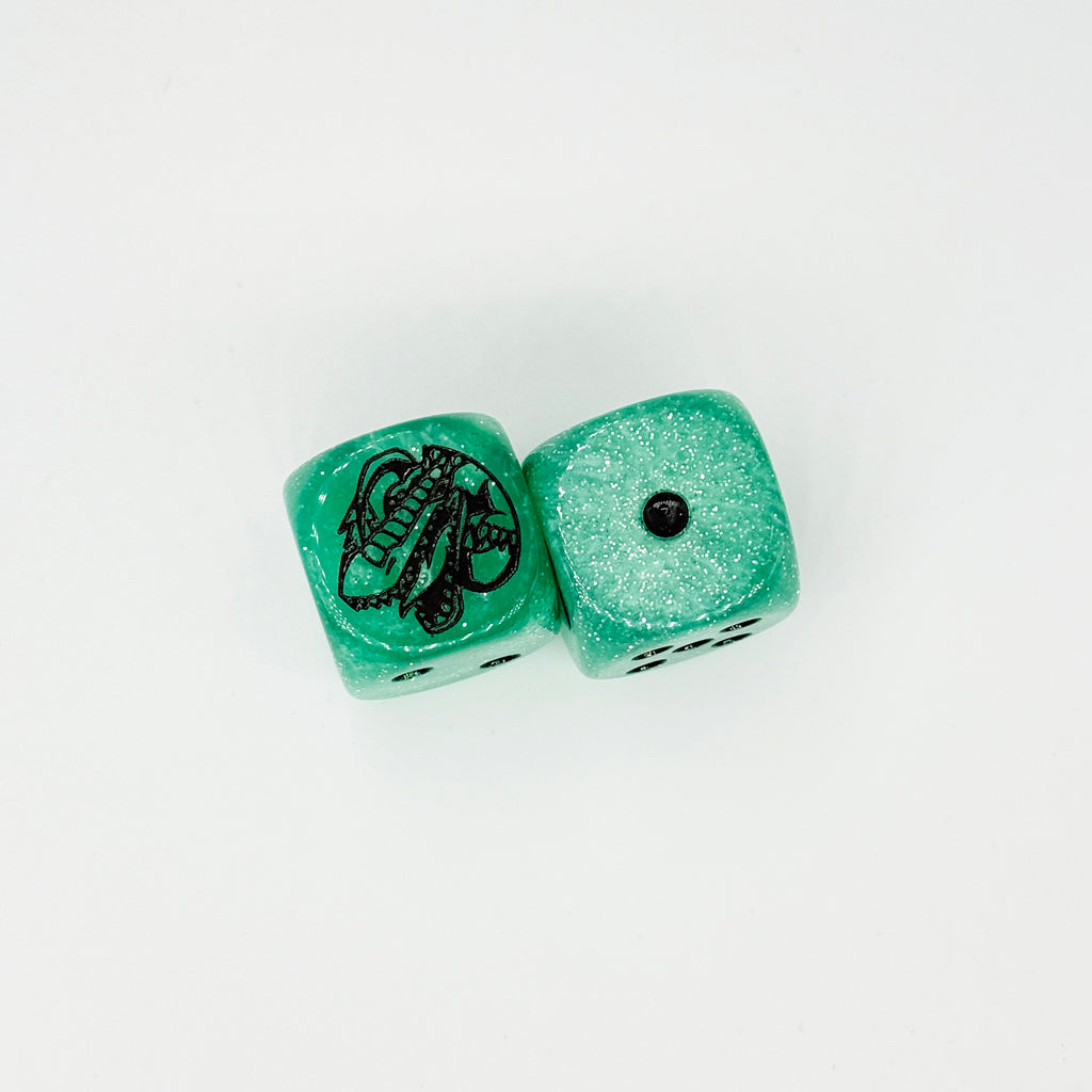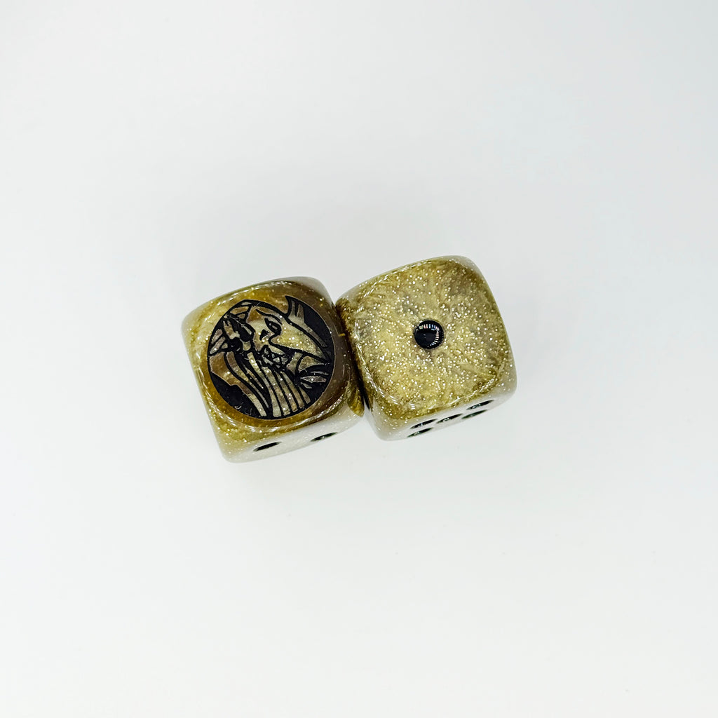 Please note that the artwork are engraved on the "6" side of the dice. These are in-stock are ready to be shipped!